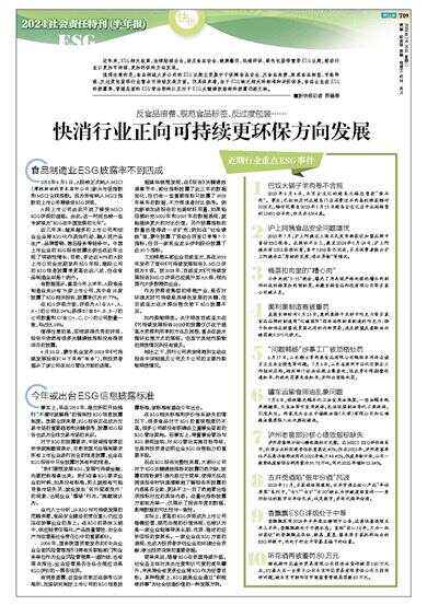 近年来,ESG相关政策、法律陆续出台,涉及食品安全、健康餐饮、低碳环保、绿色包装等重要ESG议题,推动行业以更加可持续、更加环保的方向发展。