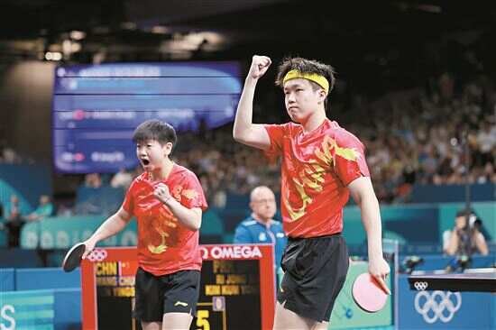 ■7月30日,在巴黎奥运会乒乓球混双决赛中,中国组合王楚钦/孙颖莎4比2战胜朝鲜组合,获得本届奥运会国乒首个冠军。新华社图