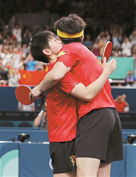 这是中国乒乓球队在奥运参赛历史上的首枚混双金牌。王楚钦说:“这块混双金牌压在我们心头很久了,我之前也说过,我想用生命换回这块金牌,今天我做到了。”