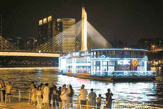 ■游客们在广州市大沙头码头等待夜游轮船靠岸。新快报记者 夏世焱/摄