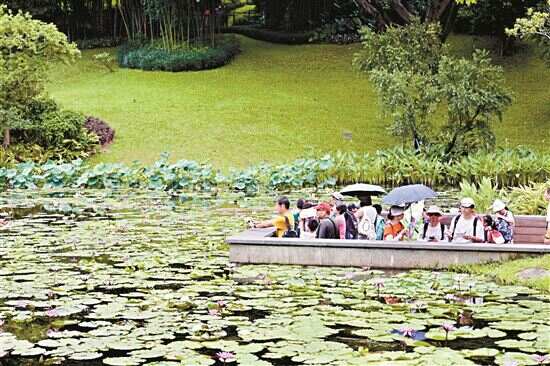 在睡莲植物展示园里,261个品种的睡莲、荷花竞相绽放。新快报记者在现场看到,有叶片独特的睡莲“狐火”、极具香味的黄睡莲,还有跨越千年绽放的“宋莲”和渡洋回家的“孙文莲”。