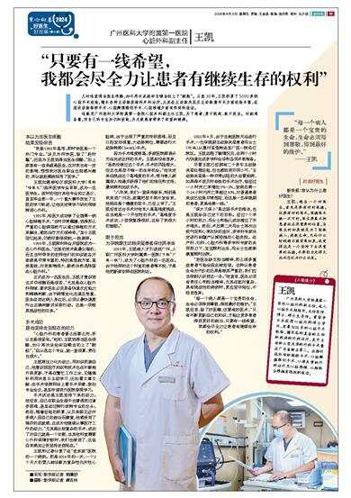 “每一个病人都是一个宝贵的生命,生命必须得到尊敬,得到最好的维护。”王凯坦言,除了好医德,还要有好医术,“只有不断更新自己的知识,才能让更多患者得到更好的救治,只要有一线希望,我都会尽全力让患者有继续生存的权利。”