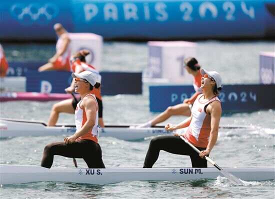 ■皮划艇静水女子双人划艇500米决赛中,中国组合徐诗晓/孙梦雅夺得金牌,并以1分52秒81刷新奥运最好成绩。新华社发