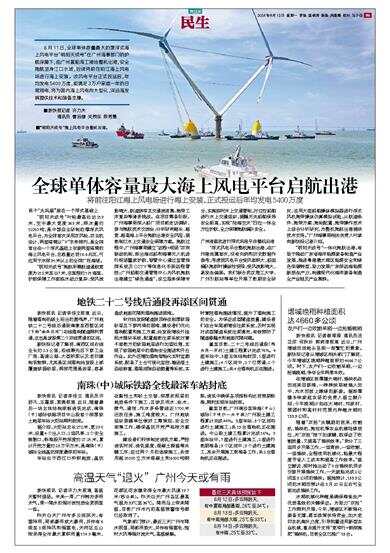 将前往阳江海上风电场进行海上安装,正式投运后年均发电5400万度