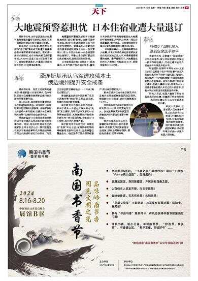 据共同社10日报道,酒店和日式旅馆“退订潮”集中在可能遭大地震袭击的中部和西部沿海地区。高知县一家日式旅馆说,在日本相关部门发布警告后,大约450名客人在9日取消了预订。旅馆经营者表示,大量退订让旅馆猝不及防,对经营造成影响。