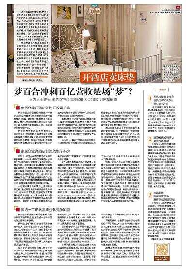 但部分业内人士认为,床垫企业跨界酒店业务主要目的是将酒店作为其核心业务的流量入口和广告位,而非单纯追求酒店业务的盈利。大材研究首席分析师邓超明向新快报记者表示,家居企业办酒店的例子不少,但酒店数量普遍不多,只有一两家,多数开设于工厂所在的城市,作为独立的业务进行运营,同时承担接待、推广等多种功能。近些年,床垫企业也尝试布局酒店业务,希望为品牌引流,甚至销售产品。但酒店业务必须实现高质量运行,获得较大规模的客户流量,并且是比较优质的客户资源,才能对品牌推广与床垫产品的销售提供有效支持。
