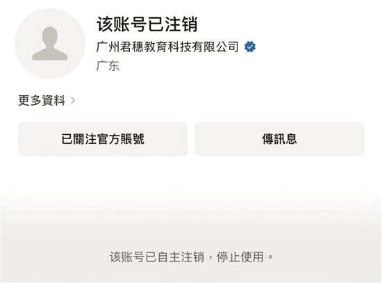同时,新快报记者发现,君穗公司的官网已停止运营,公众号已经注销。企查查显示,君穗旗下的深圳君穗国际教育集团有限公司已被列入失信被执行人、限制高消费和经营异常名录。而重庆君穗科技有限公司目前则是经营异常。根据全国12315消费投诉信息公示,广州君穗教育科技有限公司新增多例投诉。该公司近一月公示投诉总量为151件,月环比上升179.63%(数据截至8月11日)。