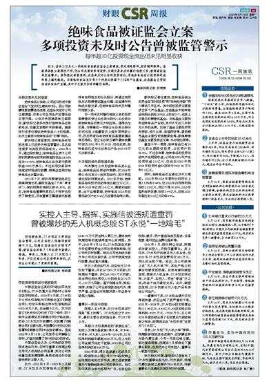 新快报记者留意到,绝味食品在信披违规上已经多次被监管警示,且这些违规多与其投资活动有关。2021年6月,通过股权转让,绝味食品全资子公司深圳网聚持有的和府捞面股权由23.08%变为16.92%,绝味食品从此交易中获得收益2800万美元。不过此项交易因未按规定时限进行披露,湖南证监局对绝味食品出示警示函。