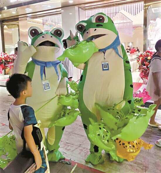 墨墨说,去年暑假,她和弟弟在小区里卖青蛙,穿上青蛙服装、戴上青蛙头套“卖崽”——青蛙玩具,第一个晚上就卖出了45元,然后就持续了一个月左右时间,大概出摊十几次,赚到一点零花钱。