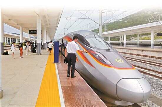 ■8月20日13时15分,载着媒体记者的试验动车组从龙川西站开出,一路驶向梅州西,进行列车运行图参数测试,梅龙高铁开通运营进入倒计时,届时,广州至梅州的最短通行时间将缩至1.5小时左右。 新快报记者 毕志毅/摄