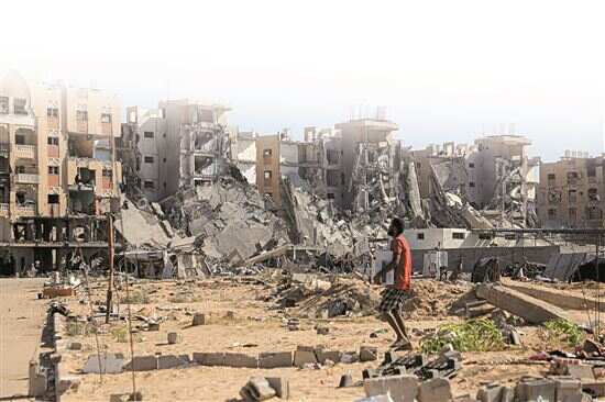 ■8月16日,加沙地带南部城市汗尤尼斯西北部的一座城镇废墟。