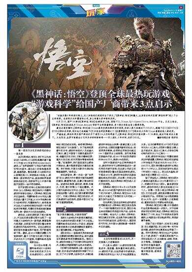 有玩家留言,第一次在一款“世界级”的3A游戏大作中看到中国风格鲜明的建筑、雕塑等内容,自豪之情油然而生。该游戏在美国、新加坡、泰国、加拿大、巴西、意大利等12个地区霸榜。不少国外玩家在社交平台上表示,“为了更好地玩好整个游戏,自己要先看看《西游记》”。无疑,《黑神话:悟空》的成功,不仅是游戏行业的胜利,更是中国文化“出海”的重要里程碑。