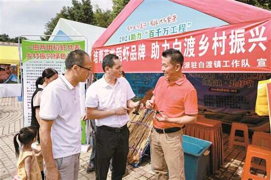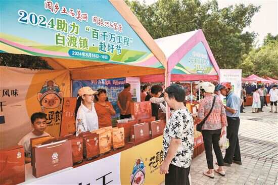 因乡土而美丽,因振兴而繁荣。8月16日—18日,梅州市梅县区白渡镇举办了2024助力“百千万工程”赴圩节,白渡牛肉干、桃柳春白酒、峰溪村书琴农场灵芝茶、灵芝袍子粉……现场不仅汇聚了白渡镇众多土特产,还有乡村振兴产业蓝龙虾,当地龙头企业还来到现场招聘。负责乡村振兴工作的白渡镇人大主席李光照表示,赴圩节有利于拉动城乡消费,激活农村消费市场动力,对于推动城乡融合发展,助力“百千万工程”,推动乡村振兴具有重要意义。