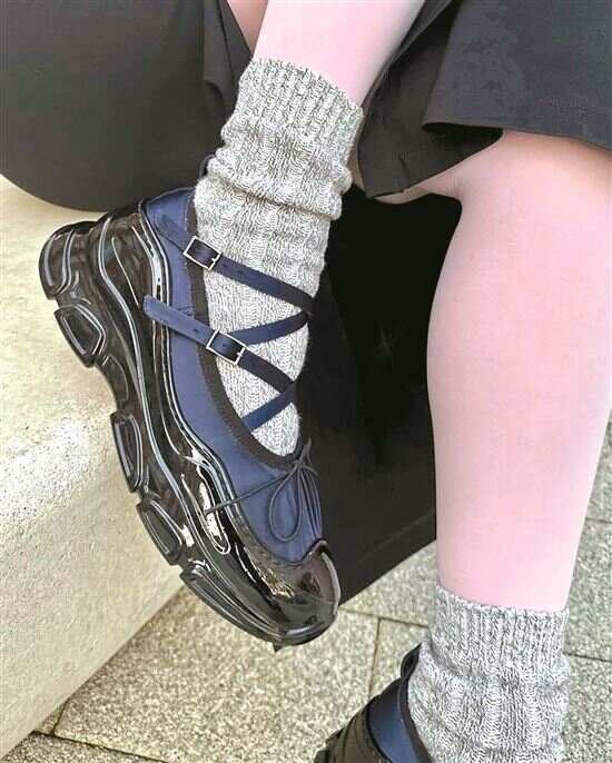 玛丽珍精致鞋底替换成运动鞋底,舒适度更佳,硬朗感平衡了原本的甜腻。