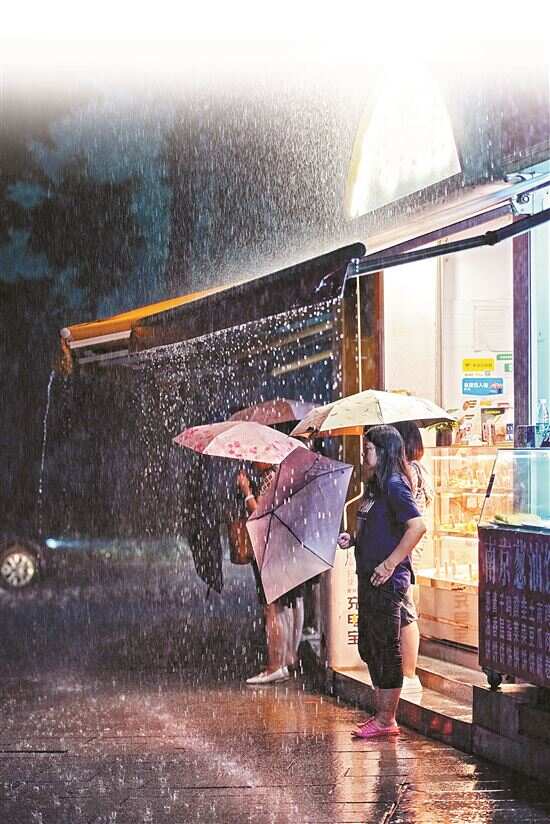 ■昨日傍晚下班时分,广州突降暴雨,几位市民在天河一家店铺前避雨。广州市气象灾害应急指挥部从29日17时21分起启动广州市气象灾害(暴雨和雷雨大风)Ⅳ级应急响应。