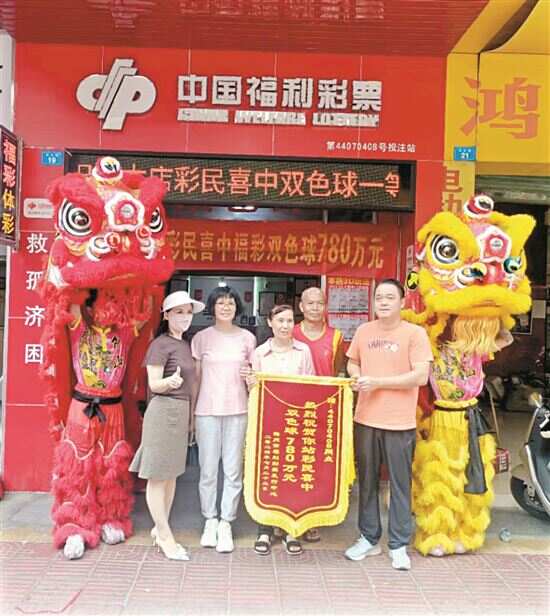 近日,梅州兴宁市兴江街19号44070408销售网点举行大奖庆功仪式,梅州市福利彩票发行中心的工作人员为站主和销售员送上幸运福彩站锦旗,现场醒狮热舞、锣鼓喧天,吸引了众多路人驻足围观,大家纷纷进站效法中奖者机选双色球。
