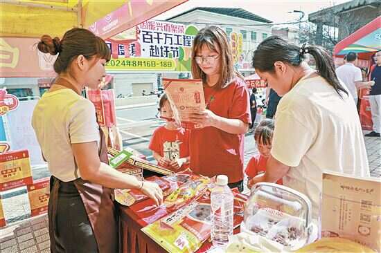 ■2024助力“百千万工程”赴圩节上,村民游客购买特色美食白渡牛肉干。