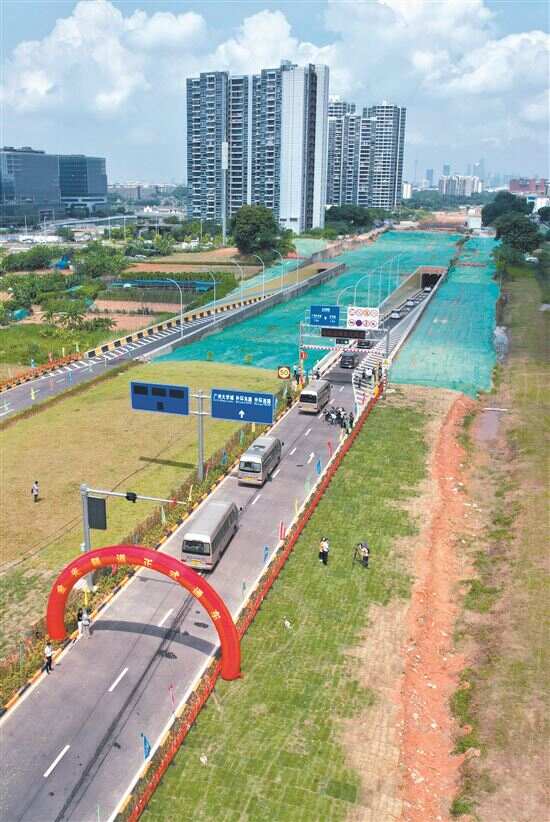 新快报讯 记者谢源源 通讯员番宣报道 9月1日上午,备受关注的金光隧道正式通车。金光隧道是连通广州大学城与广州国际创新城最为便捷的过江通道,也是番禺区第一条自行组织建设的水下隧道。随着金光隧道的开通,两岸通勤时间从原来的30分钟缩短至5分钟,为市民群众出行提供了便利。
