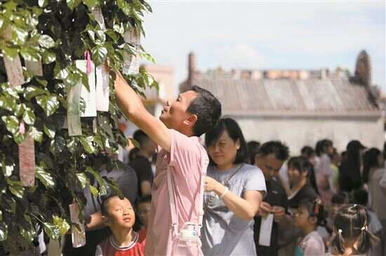■开学第一天,爸爸妈妈们挂上许愿纸,祈求自己的孩子学业有成。