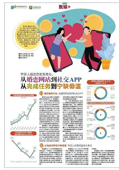 数据显示,目前,婚恋服务市场已呈现去中心化趋势,除婚恋交友APP,还有多元化的社交网络、短视频平台同样能满足婚恋需求。偏社交类软件的活跃人数相较于仅婚恋类软件的活跃人数高约10倍,远超传统婚恋平台推出的软件。此外,陌生人社交平台开始争夺年轻人市场,该类平台相较于目的性更强、沟通成本更大的婚恋网站更容易保证活跃度。