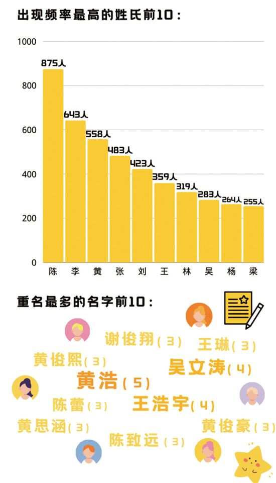 “今年又是‘老陈’家居姓氏榜首”“‘陈’姓再次登上新生‘百家姓’之首”……在各大高校新生大数据中,这样的表述层出不穷。从今年已公布的广东高校新生大数据显示,“陈”姓稳居多校姓氏榜单第一名。
