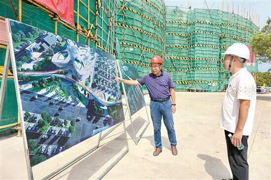 “我们现在西区这里,主楼的造型是由四片叶子拱一个荔枝果实造型,穹顶钢结构即将完工,到时候还会装入玻璃幕墙,设计了好几种灯光模式。开放后一到夜晚,将非常惊艳。”保利长大茂名服务区提质升级工程项目党支部书记曹坤带着新快报记者边看施工现场边介绍说。