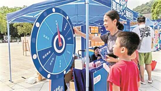 本次活动精心设置了舞台表演区和健身游戏互动区,除了观看精彩的健身表演外,还能参与“爱乒就会赢”“挑战高度”“眼疾手快”“精准射击”“一击即中”等趣味游戏。其中,“爱乒就会赢”游戏深受群众喜爱。市民黄先生表示,巴黎奥运会上,中国乒乓球队斩获佳绩,也点燃了他的乒乓球热情,这个游戏环节给了自己“大展身手”的机会。