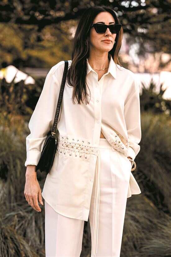 ▲如果担心白色裤子过于显胯,可以用oversize的衬衫进行修饰。