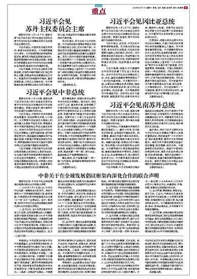出席中非合作论坛北京峰会的非方领导人及中非企业家代表、相关国际组织和机构代表约1000人参加开幕式。中非合作论坛非方共同主席国塞内加尔总统法耶,津巴布韦总统姆南加古瓦、赞比亚总统希奇莱马、加蓬总统恩圭马、科摩罗总统阿扎利、圣多美和普林西比总理特罗瓦达及与会企业家代表先后致辞,表示非中是现代化道路上的好伙伴、好朋友、好兄弟。本届峰会提出的务实合作新举措将对非洲国家实现现代化起到重要促进作用。中国推进中国式现代化将给全球经济发展带来新动力、新契机。