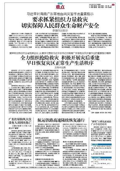 新快报讯 记者许力夫 通讯员张东 王天巍报道 今年第11号台风“摩羯”已于9月7日15时30分前后以超强台风级在越南广宁南部沿海再次登陆,登陆时中心附近最大风力17级(58米/秒),中心最低气压925百帕。预计,“摩羯”将继续向西偏北方向移动,强度快速减弱。