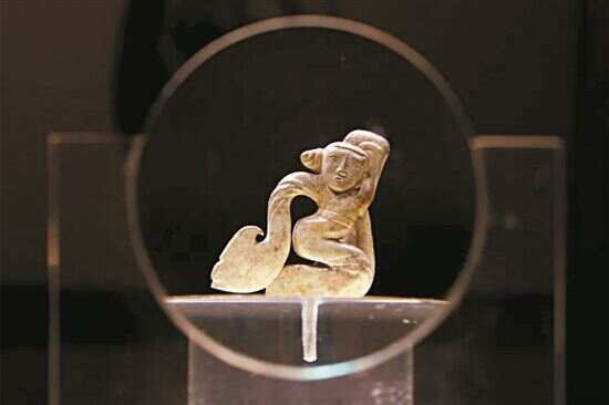 在南越文王墓出土的鼎鼎大名的“圆雕玉舞人”——一位广东“靓女”——发型就是螺髻,身上的服饰则是中原文化的汉服,跳的舞蹈是楚地典型的翘袖折腰舞。“小小一件圆雕玉舞人,融合了汉、楚、越三地文化,也是当时南越国文化交融的一种反映。”这是记者从南越王博物院方面获得的信息。