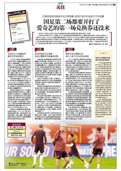 今晚,国足将打响18强赛的第二场比赛,主场迎战沙特队。昨天有消息称,爱奇艺体育可能会开放第二场比赛,通过免费转播的方式致歉。不过,截至昨晚8时,爱奇艺体育并未正面回应此事。如果再次发生球迷付费后却无法收看的问题,那么爱奇艺体育的口碑难免会进一步崩坏。