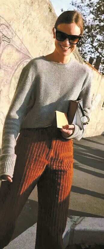 即使是相近质感的单品搭配在一起,美拉德色系与灰色系也能营造出反差感而不显沉闷。
