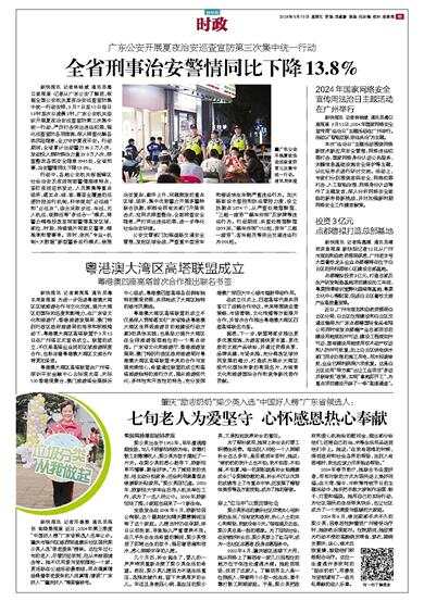 新快报讯 记者林钢威 通讯员粤公宣报道 记者从广东公安了解到,根据全国公安机关夏夜治安巡查宣防集中统一行动安排,9月7日至10日每日19时至次日凌晨2时,广东公安机关组织开展夏夜治安巡查宣防第三次集中统一行动,严厉打击突出违法犯罪,强化巡查宣防各项措施,深入排查化解各类风险隐患,全力守护夏夜平安。行动期间,全省累计出动警力36.2万人次,发动投入群防群治力量29.8万人次,排查整改各类安全隐患9945处,全省刑事、治安警情同比下降13.8%。