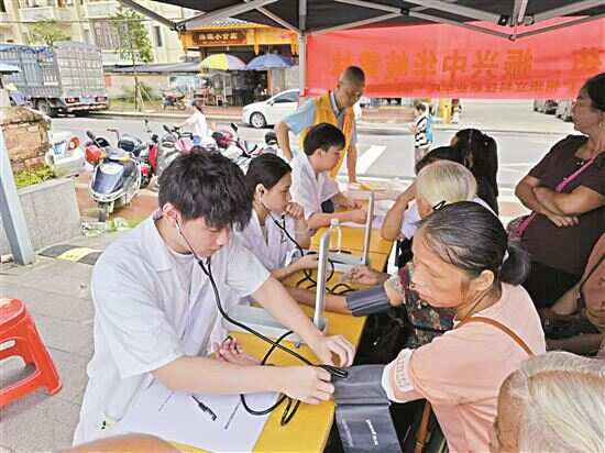 在广州华立科技职业学院中医药学院中医药专业药食同源方学科带头人罗琴芳博士的带领下,志愿队来到福堂文化广场开展义诊服务。志愿队利用所学中医学知识,有序地为村民提供体格检查、推拿艾灸、答疑解惑等多项服务。队员们耐心细致地为村民提供健康咨询,深入了解当地村民对健康状况和中医药认知现状等,并为老人们提供个性化指导,帮助居民养成健康的生活方式和生活习惯。