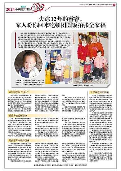 熬过中秋节,刘俊明如释重负。“最怕过节,尤其是中秋节、除夕夜,普通人家欢声笑语庆团圆,我们的思念和悲伤更深更重。”他长叹一声,“全家人都在刻意回避‘团圆’‘团聚’这样的字眼,缺了睿睿,我们的家庭是残缺的。”