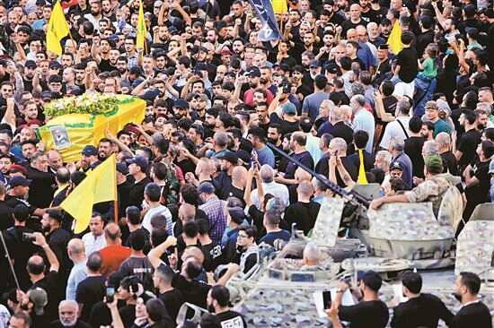 ■9月18日,在黎巴嫩贝鲁特,人们参加传呼设备爆炸死者的葬礼。 新华社发