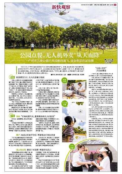 9月15日,广州市儿童公园完成了无人机外卖配送航线的首飞。目前,该业务还处于试运营阶段;在休息日的中午,市民可以前去打卡。在公园里品尝空运外卖是什么感觉?9月21日,新快报记者来到公园进行体验。多位市民对这一新鲜事物表示欢迎,广州市儿童公园表示,正积极做好“公园+低空”配套工作,为公园景区经济发展注入新的动力。