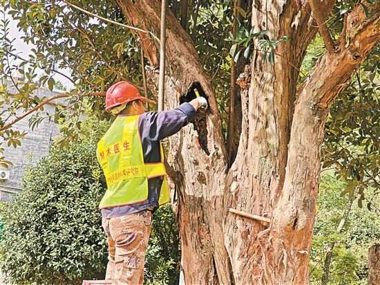 ■技术人员在云浮市给“天下第一樟”清腐。 通讯员供图