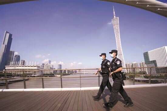 ■广州市公安局海珠区分局特警在海心桥巡逻。