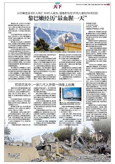 黎巴嫩公共卫生部23日晚发表声明说,空袭集中在黎巴嫩南部、黎东部贝卡和巴勒贝克等地区的城镇和村庄,遇难者包括35名儿童和58名妇女。