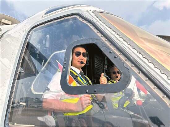 ■南航广州至香港的直升机跨境航线成功开通。首航航班的飞行员在驾驶舱。