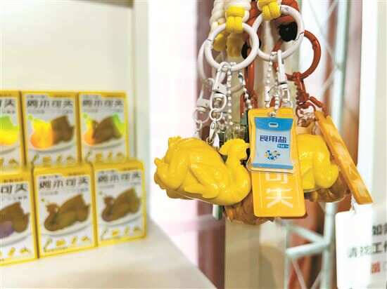 “无鸡不成宴”“民以食为天,食以鸡为先”,鸡在广东美食界的地位之高可见一斑。而在广东省博物馆二楼和三楼的“粤博文创”品牌店中,“白切鸡周边”也成了炙手可热的商品。据悉,围绕这只鸡,省博共推出了16款文创产品,包括盲盒挂件、摆件、棒棒糖、毛绒公仔等。