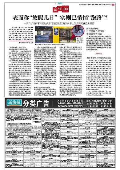 花了数千元甚至上万元买乒乓球培训课程,没想到课还没上完,门店就跑路了。近日,有消费者向新快报记者反映,广州华乒体育有限公司(下称“华乒体育公司”)表面称“放假几日”,实则已经悄悄“跑路”,该公司在广州的多家乒乓球培训门店已全部闭店,引发消费者维权。