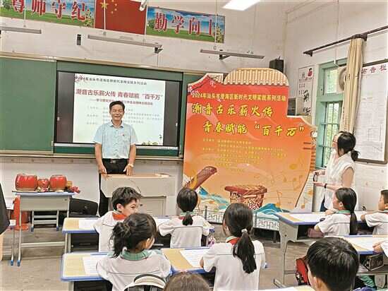 新快报讯 记者曾贵真 通讯员凌治报道 让人听得如痴如醉的潮曲,你知道大小锣鼓怎么敲,笛子怎么吹吗?日前,一场以“潮音古乐薪火传,青春赋能‘百千万工程’”为主题的传统潮剧文化进校园活动,受到了盐鸿镇港头小学师生的欢迎。活动由深圳驻盐鸿镇帮扶工作队(下称“驻盐鸿镇工作队”)联合盐鸿镇新时代文明实践所、盐鸿镇综合文化站、盐鸿镇关心下一代工作委员会、盐鸿镇港头社区新时代文明实践站共同举办,邀请盐鸿莲音潮乐社的潮剧演员老师授课。