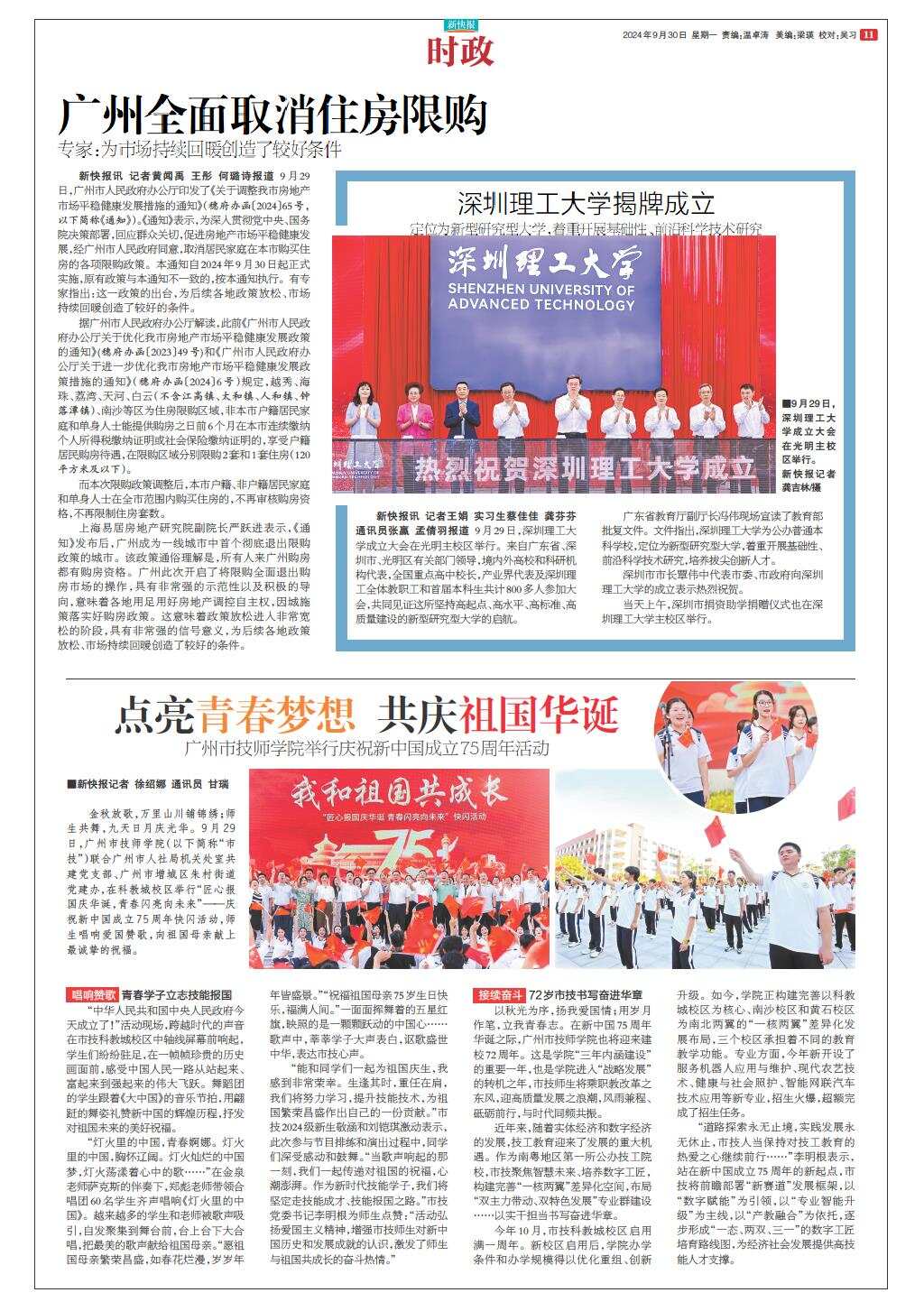 点亮青春梦想 共庆祖国华诞 广州市技师学院举行庆祝新中国成立75周年活动