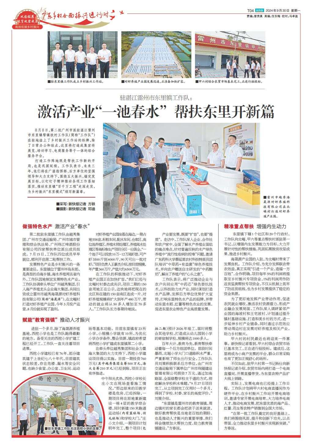 驻湛江雷州市东里镇工作队:激活产业“一池春水” 帮扶东里开新篇