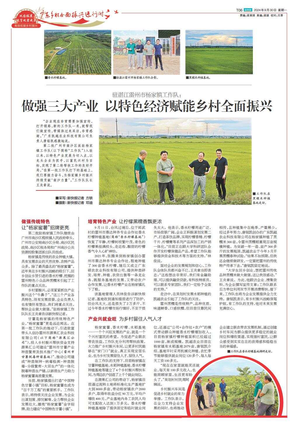 驻湛江雷州市杨家镇工作队:做强三大产业 以特色经济赋能乡村全面振兴