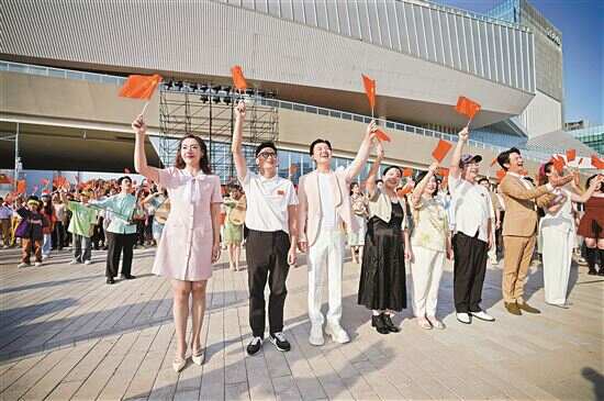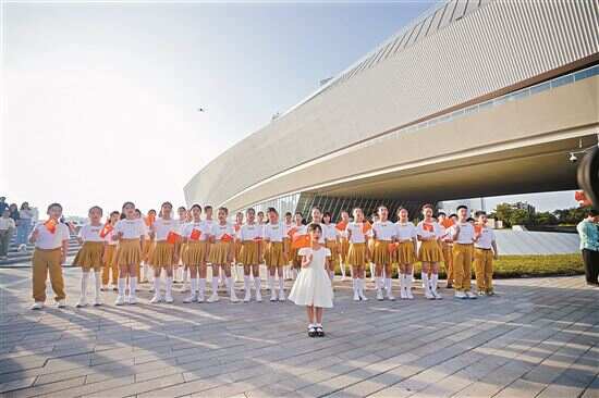新快报讯 记者黄闻禹 通讯员 穗宣报道 10月1日清晨,广州白鹅潭大湾区艺术中心上演了一场别开生面的快闪活动,庆祝新中国成立75周年。来自穗港澳的体育界、文艺界、教育界、文化界等社会各界人士,以及少年儿童、青壮年、中老年等各个年龄段的市民,共计三百多位参与者,共同唱响《今天是你的生日》,用歌声向祖国深情告白。