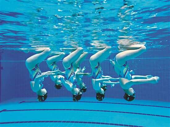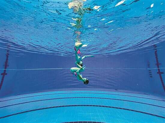 ■“翥凤翔鸾”是运动员近段时间训练的一段水下舞蹈,水里映射着她们的倒影。